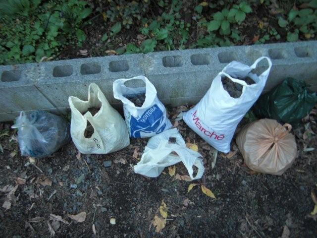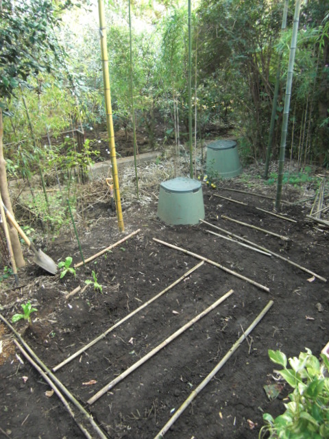 湧いたのか、どこを掘っても竹の根っこだらけだったのを、根性で切って、コンポストの