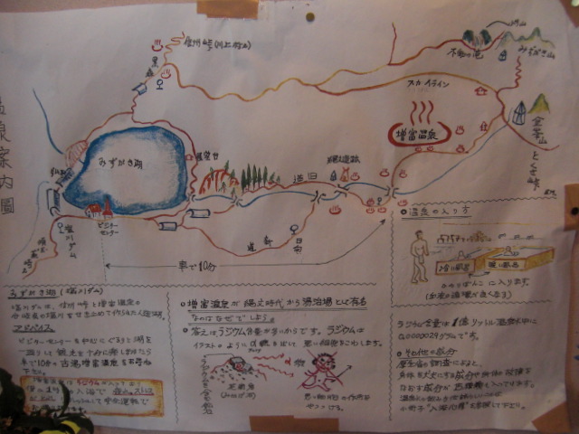 むむむ、下のほうに奇異な絵が。増富温泉は日本一のラジウム含量だそう。しかし、