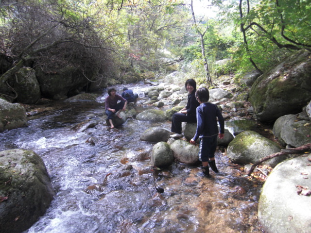 芋を掘ると、今度は食べる分だけ川に洗いに行きます。清流の水は飲めるということで、