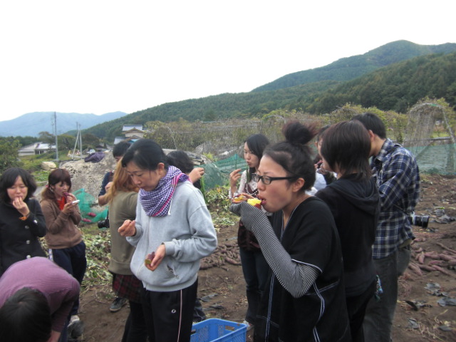 東京からICUの学生さんも駆けつけ(途中ヒッチハイク)、19人でいも掘りをします。